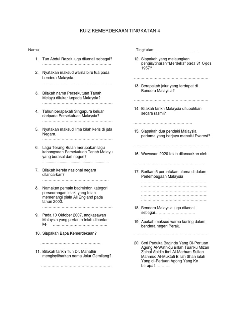 Related : Apakah Nama Kereta Nasional Pertama Malaysia Dan Bilakah - Yassin d) tiada satu pun di atas 3) bilakah tanah melayu mendapat..